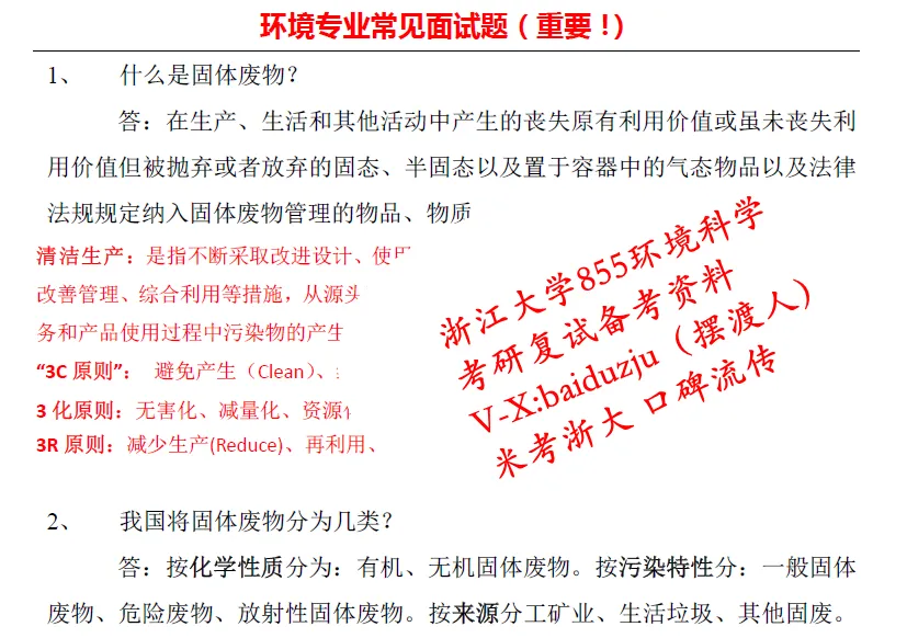26浙大环境科学环科考研复试备考资料:流程-复试题-经验