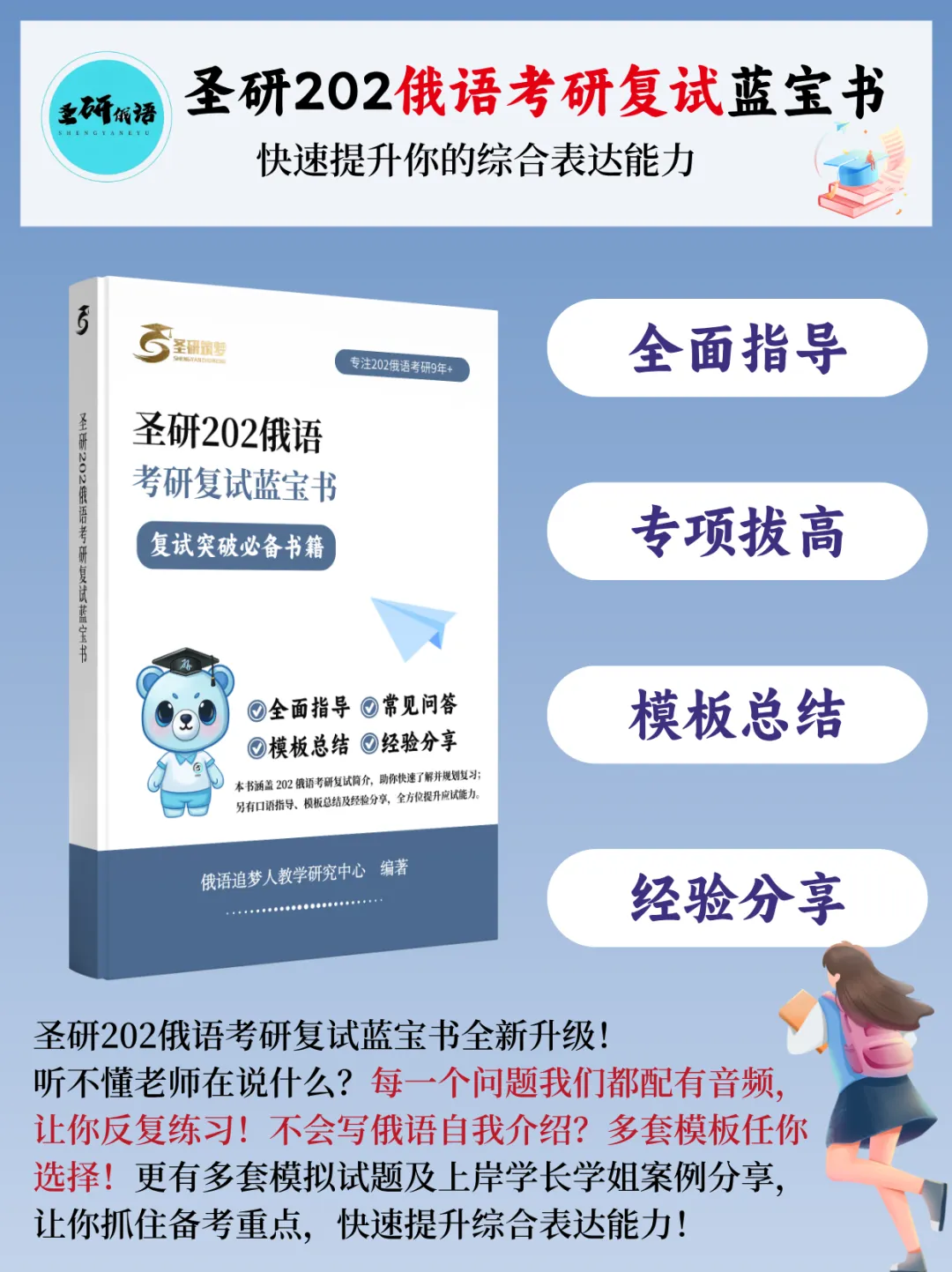 书籍简介:圣研202俄语考研复试蓝宝书全新升级!听不懂老师在说什么?每一个问题我们都配有音频,让你反复练习!不会写俄语自我介绍?多套模板任你选择!更有多套模拟试题及上岸学长学姐案例分享,让你抓住备考重点,快速提升综合表达能力!