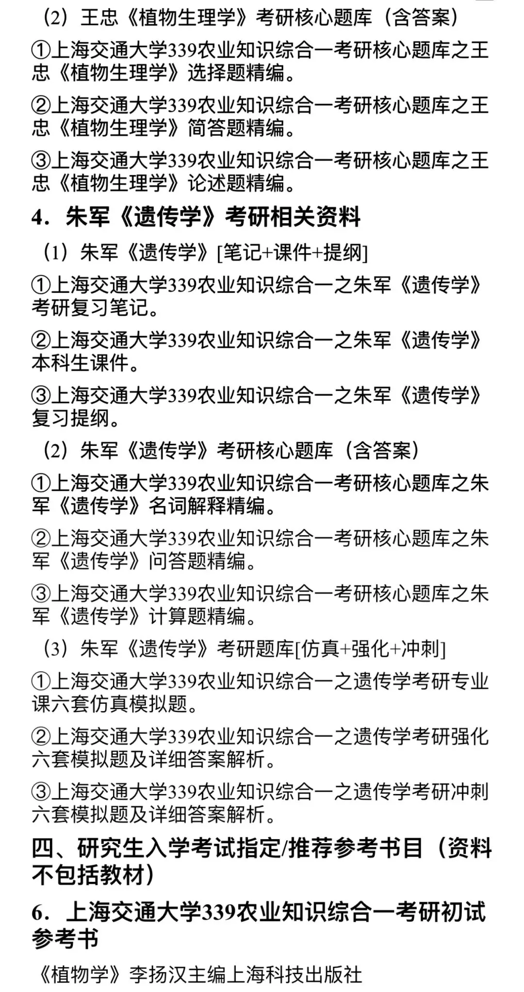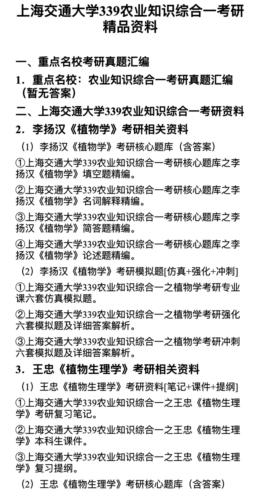 研师叔整理本资料适配上海交大农艺与种业专业考研,覆盖真题、题库、模拟题、基础复习资料,配套官方指定书目与招生信息,助力高效备考。