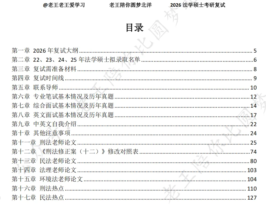 复试手册具体包含笔试面试往年真题、自我介绍模板,参考书目等,目录如下: