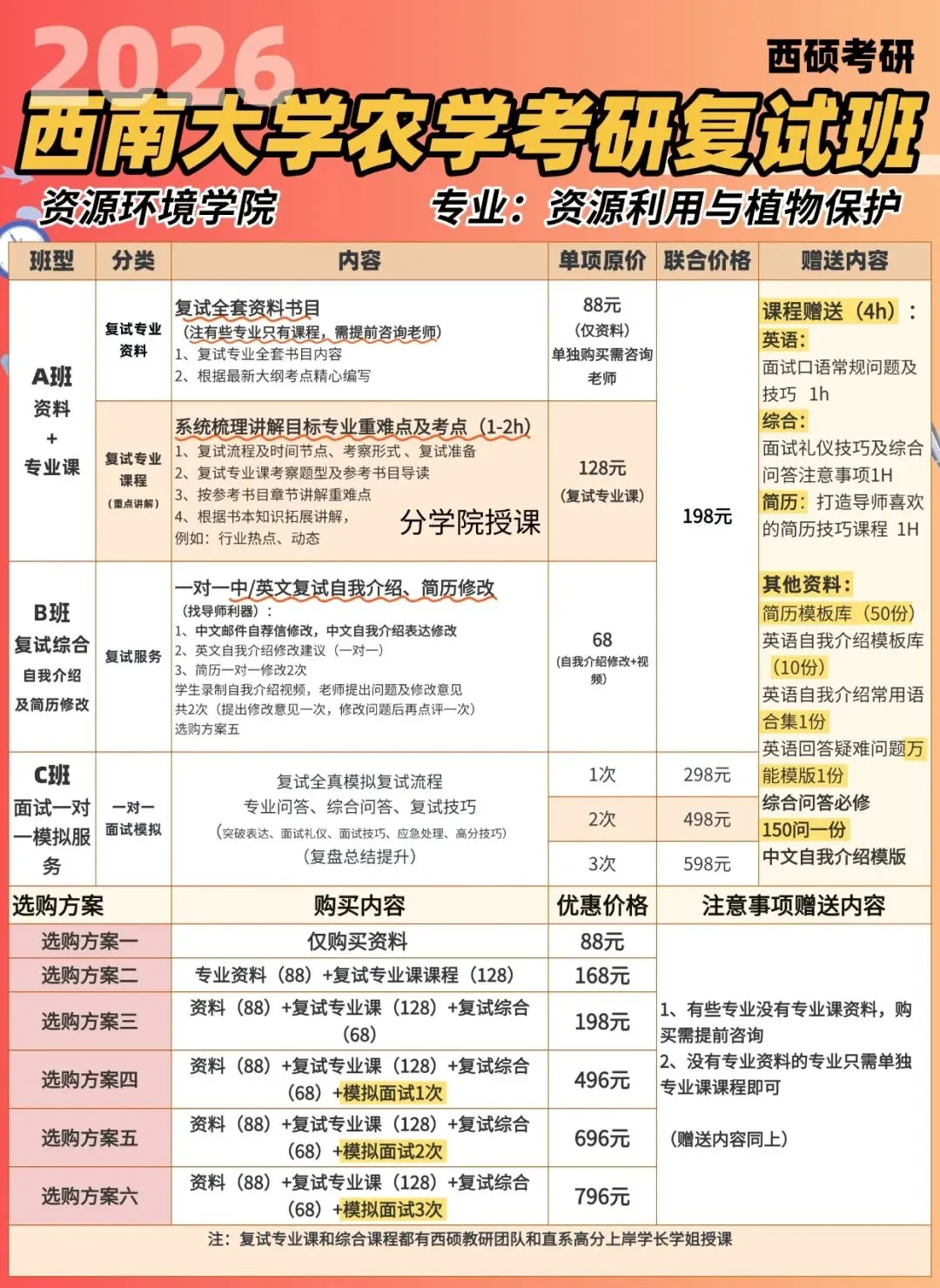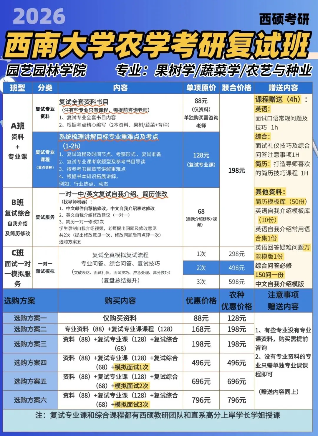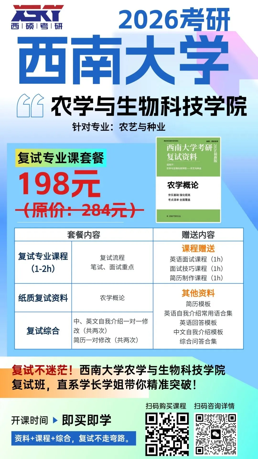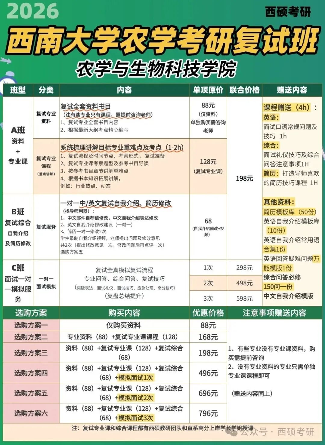 2026西南大学农学考研复试班开班啦!针对不同学院复试资料+复试技巧,即买即学.