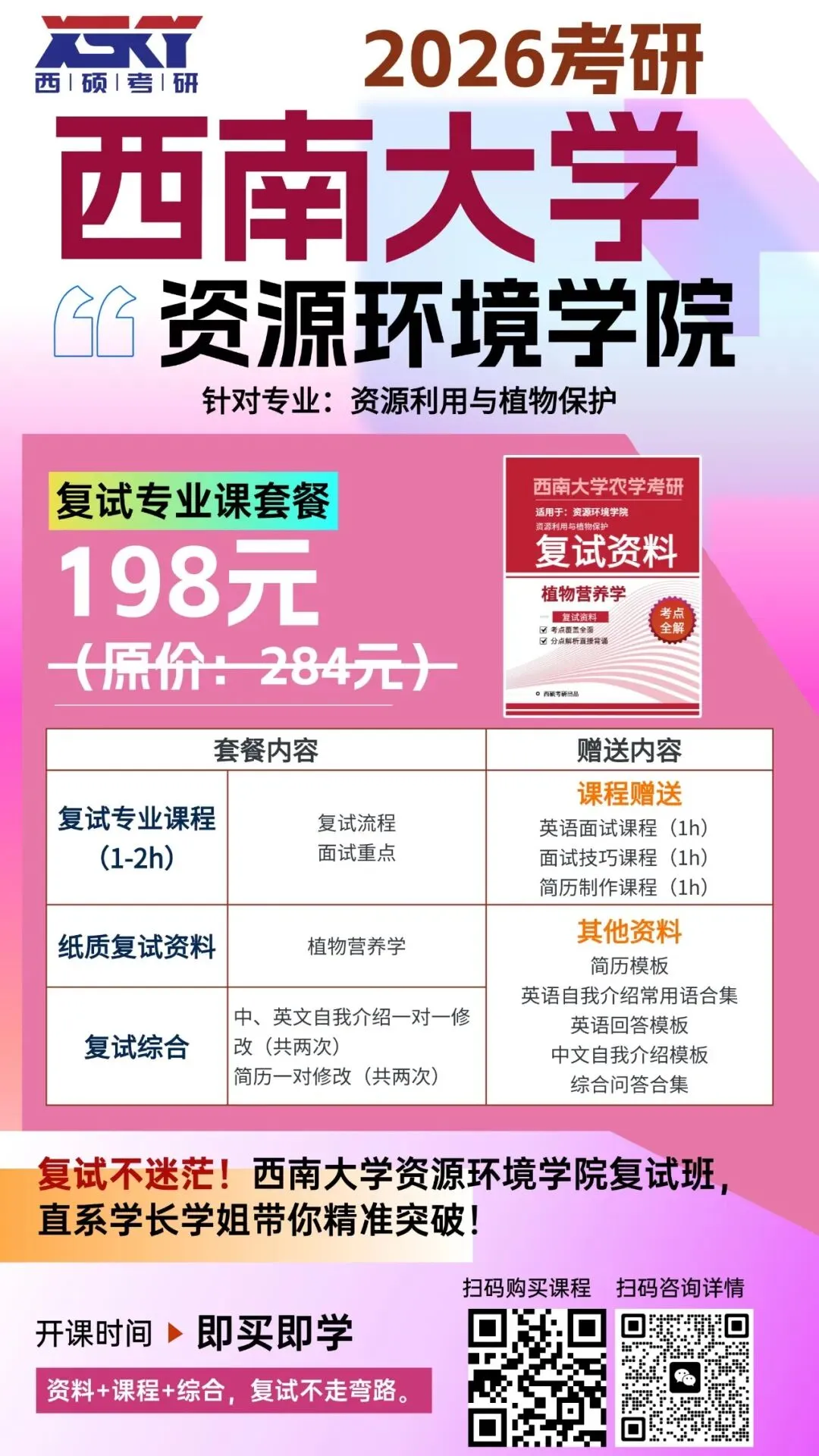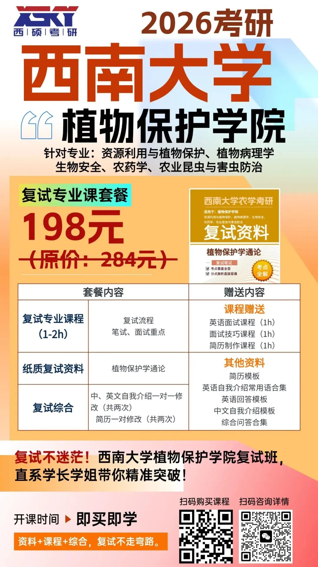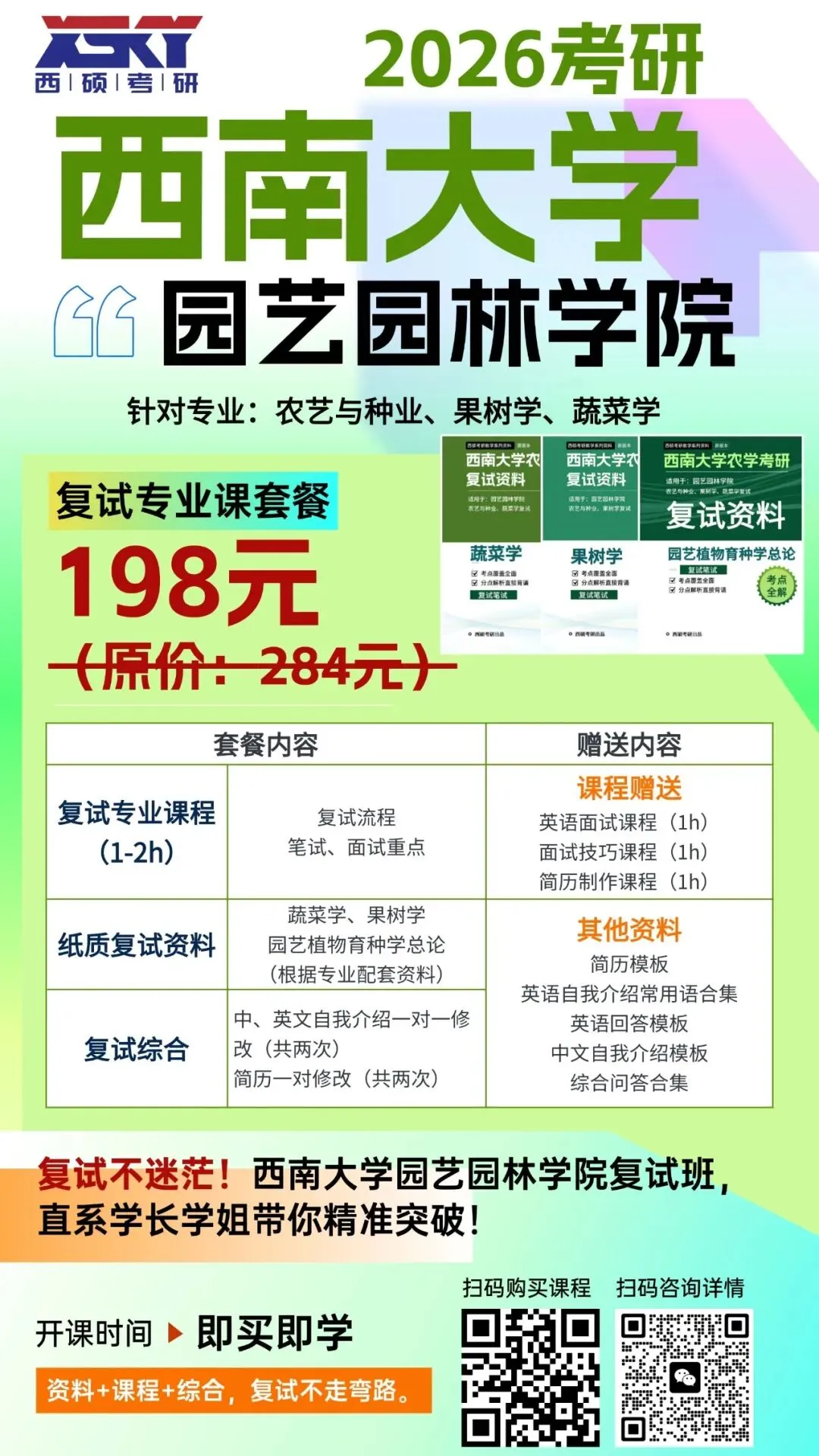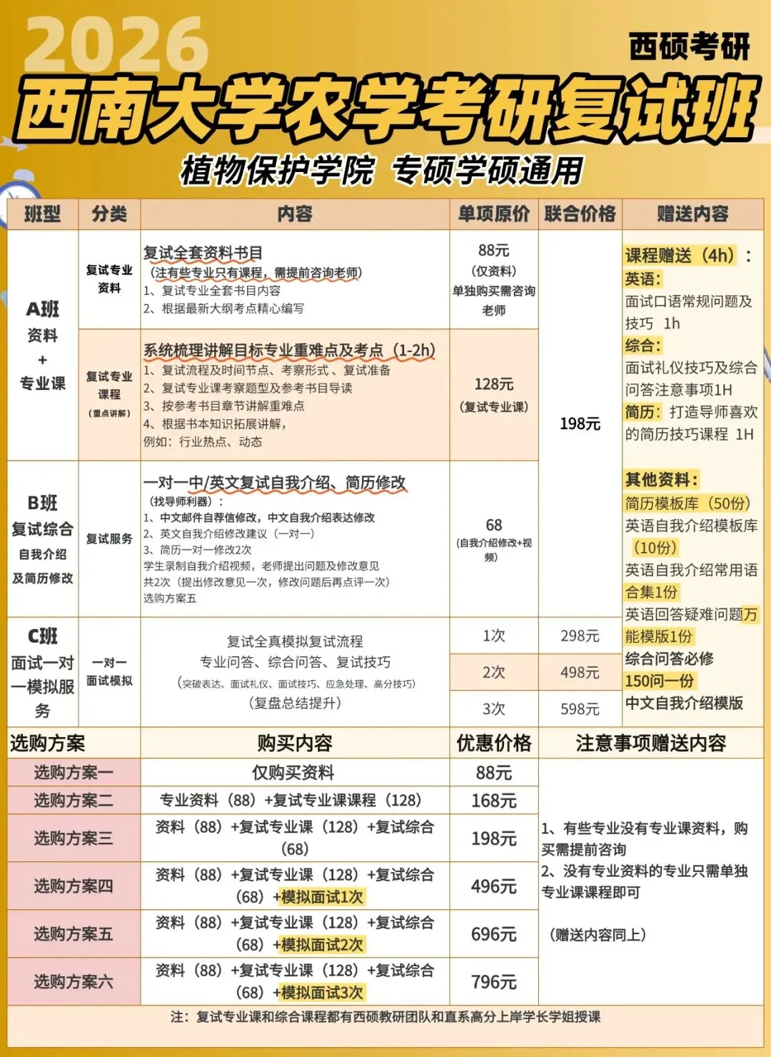 2026西南大学农学考研复试班开班啦!针对不同学院复试资料+复试技巧,即买即学.