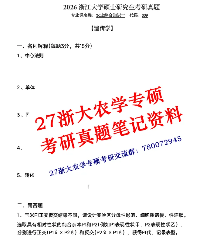 1、2018-2026作物学专硕真题详细整理版