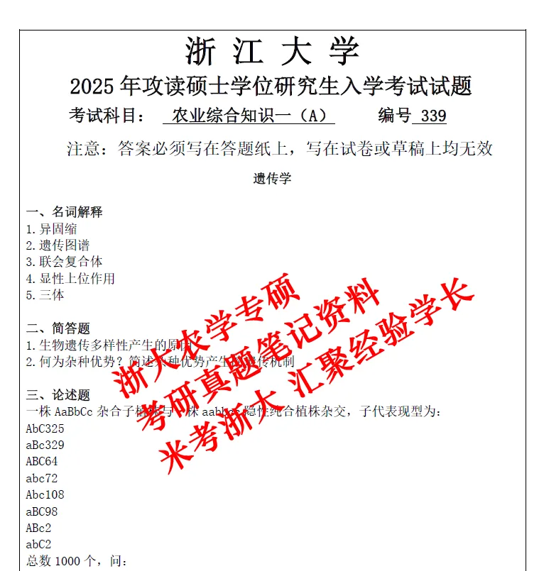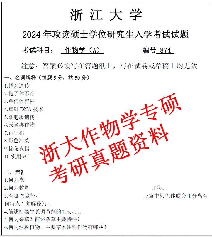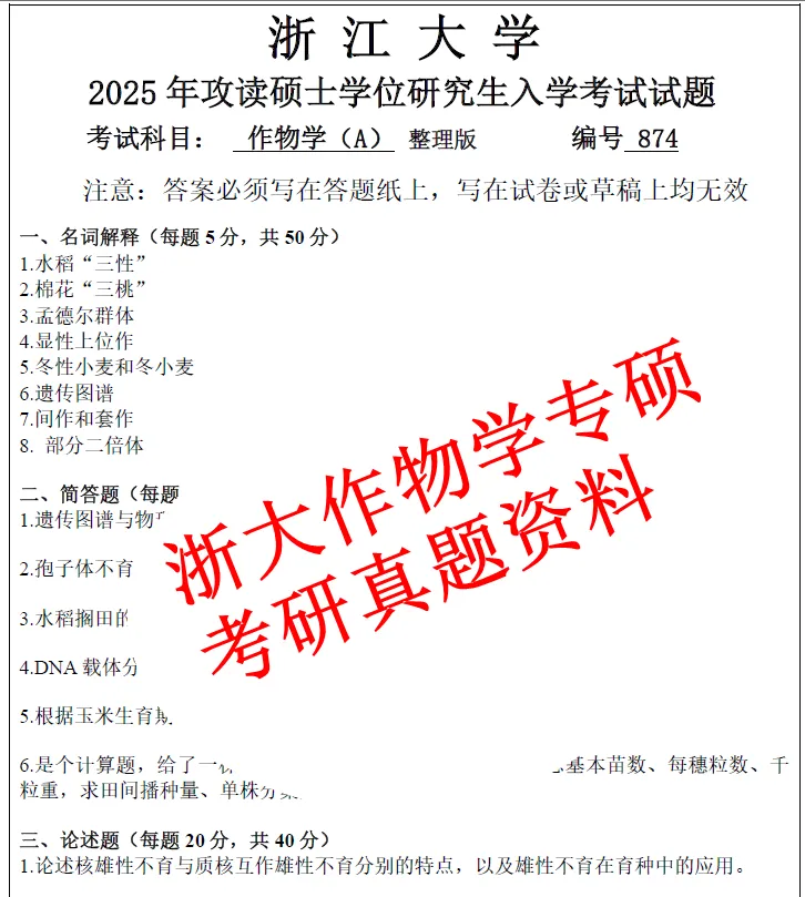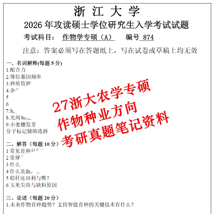 27浙江大学农学专硕作物学方向339+874考研真题笔记资料
