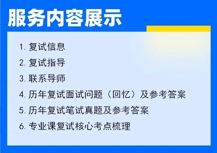 1、复试信息、复试材料说明、到校指南、面试过程及技巧、导师团队介绍等复试信息;