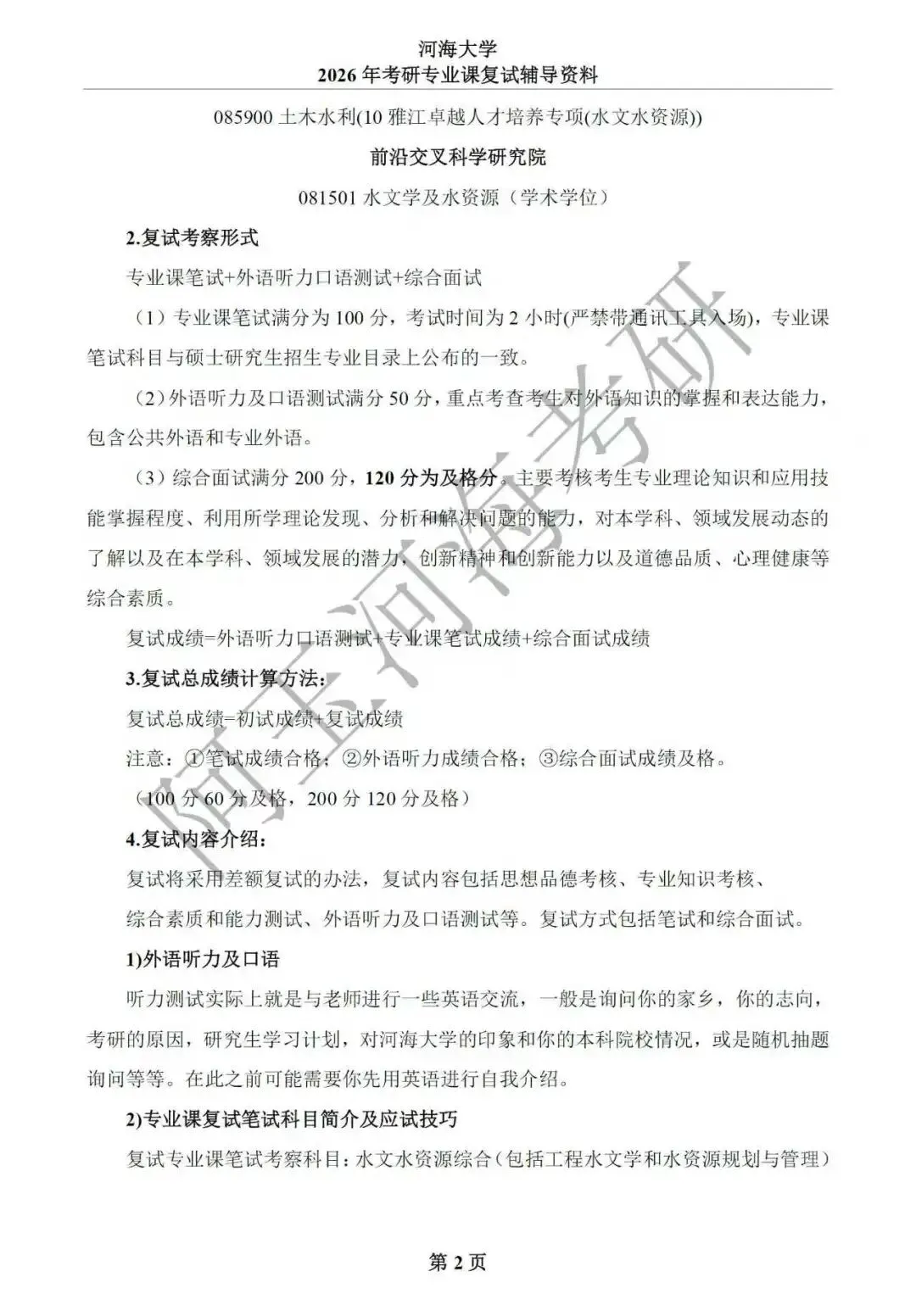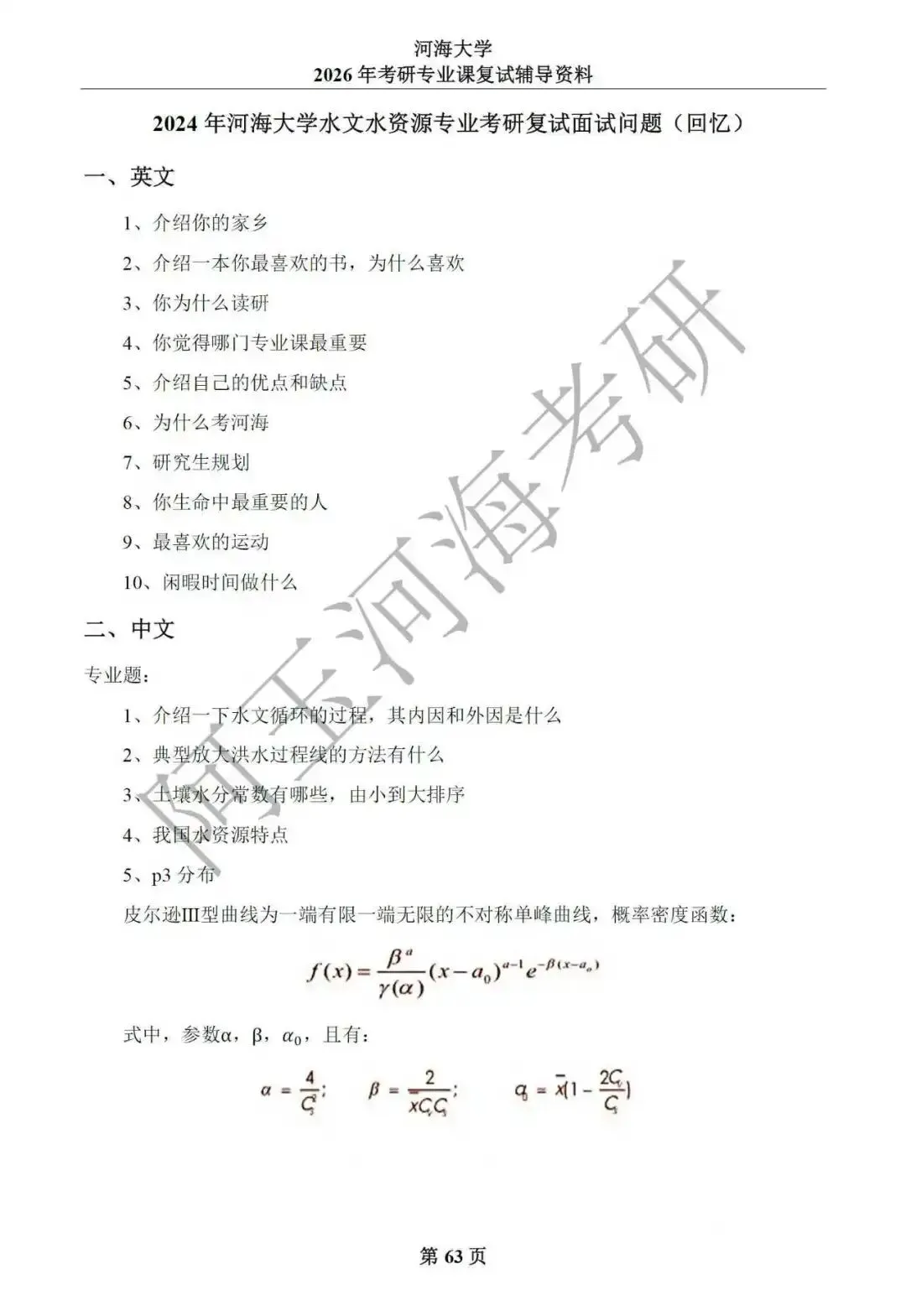 资料链接:2026年 河海大学 河海 001001水文水资源综合 考研 复试 讲座答疑