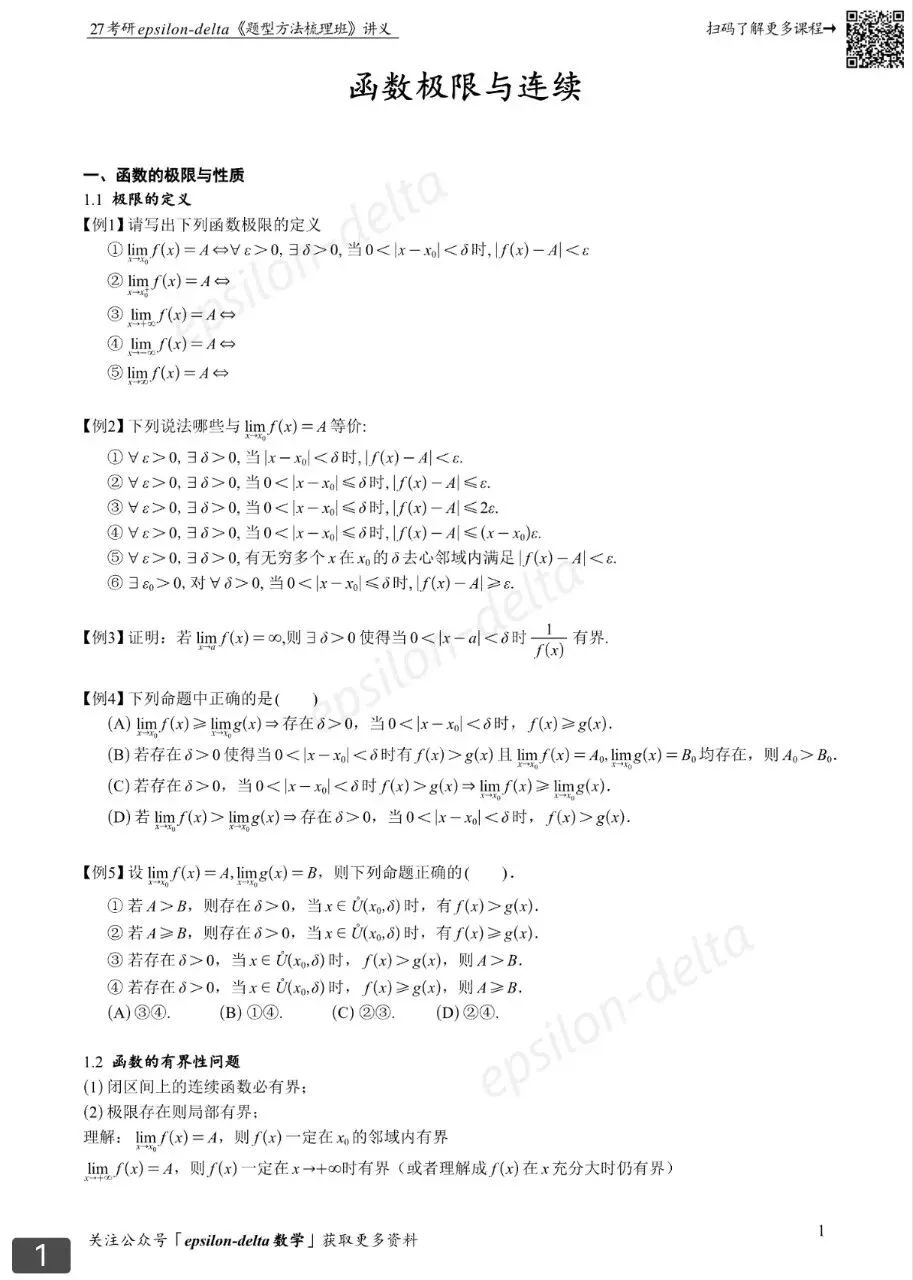 1️⃣27考研epsilon-delta《题型方法梳理班》讲义
