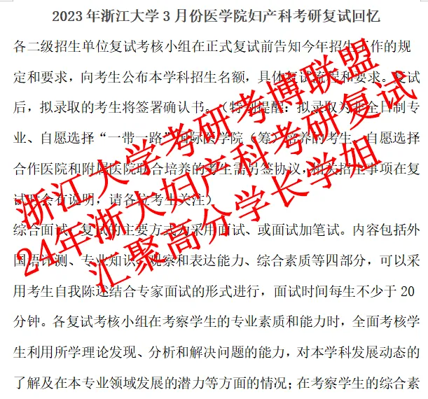 2. 2023年3月份浙江大学妇产科考研复试回忆