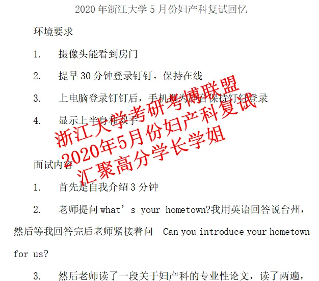5. 2020年5月份浙江大学妇产科考研复试回忆