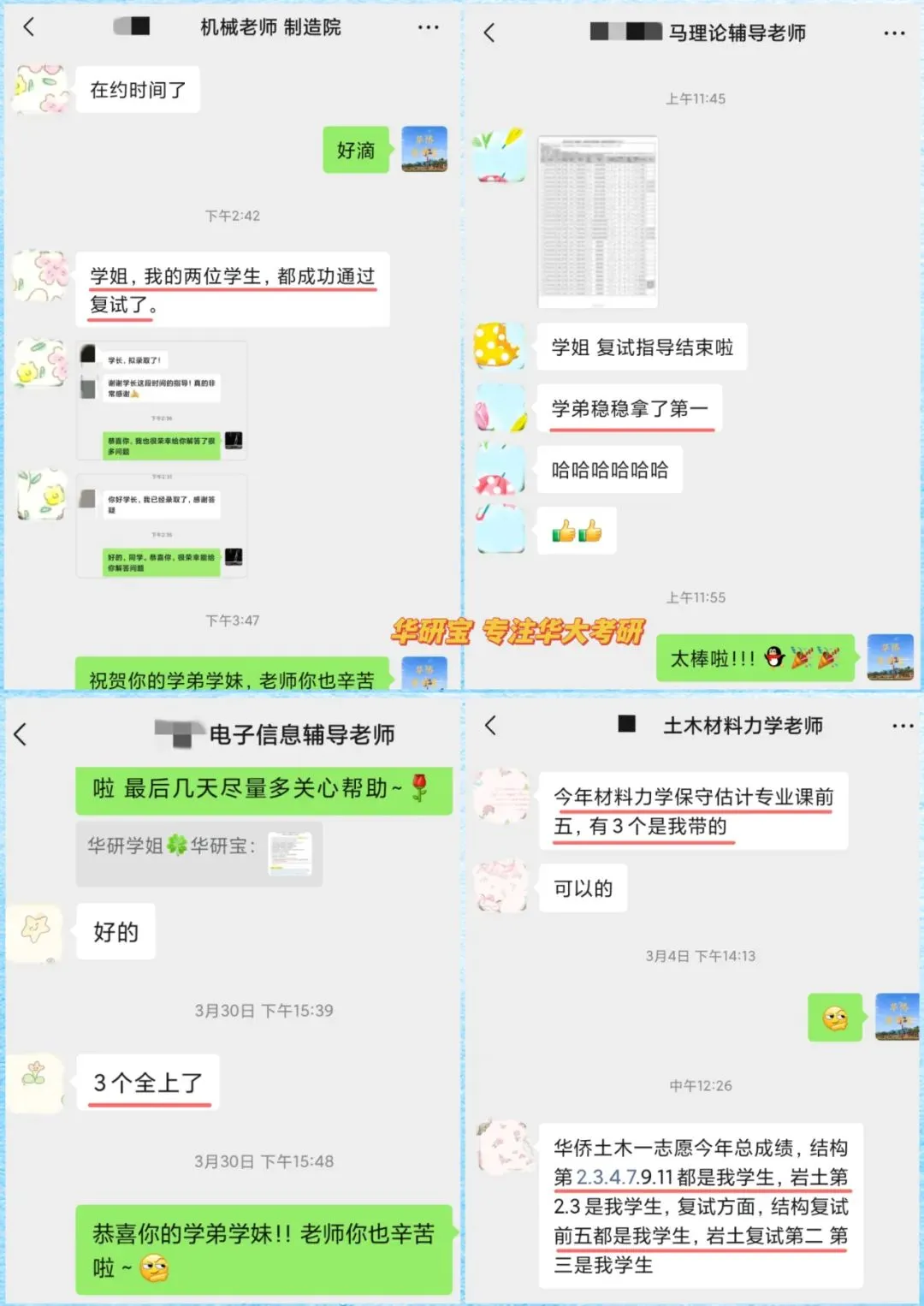 华研宝2025考研辅导老师喜报(部分)