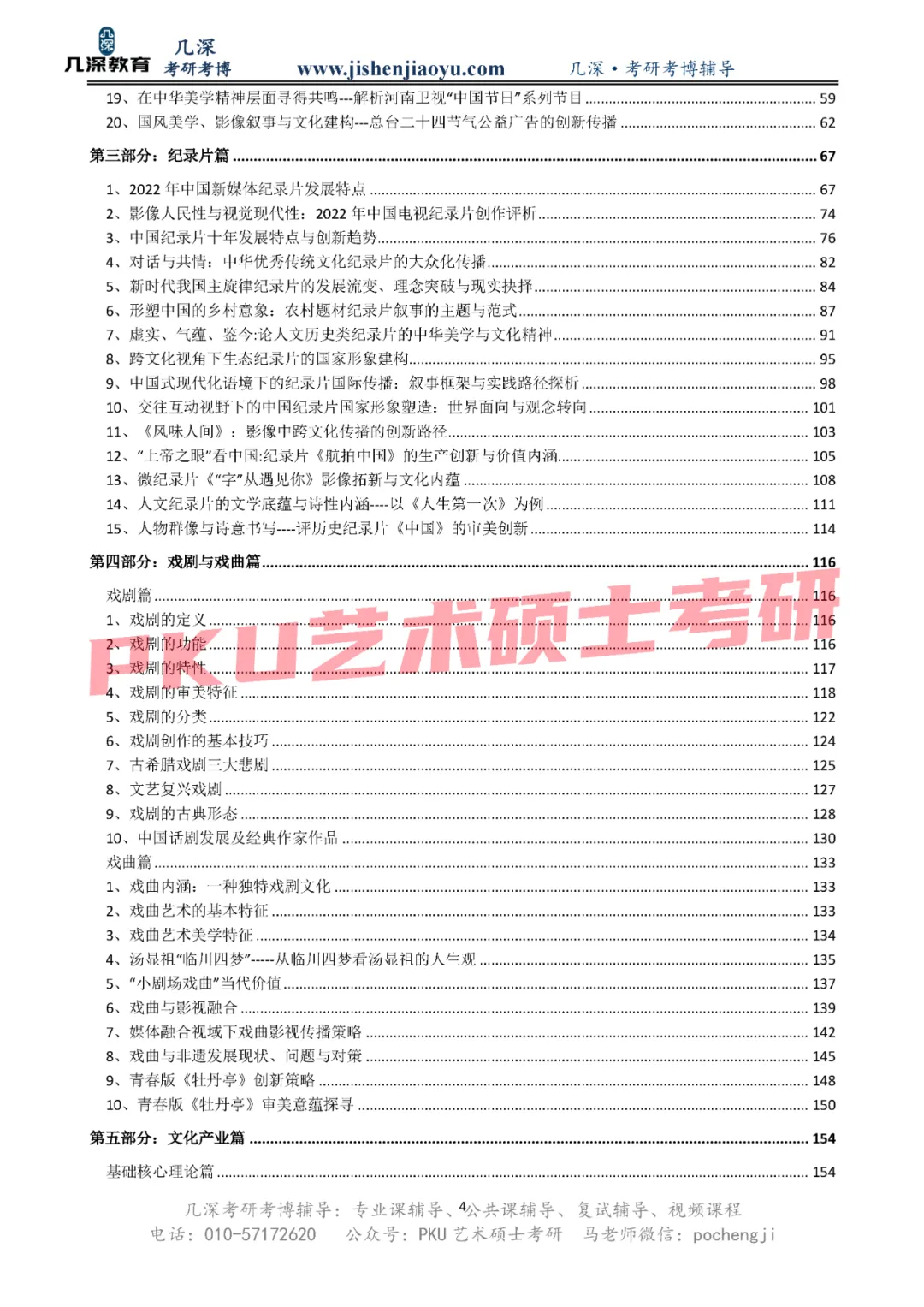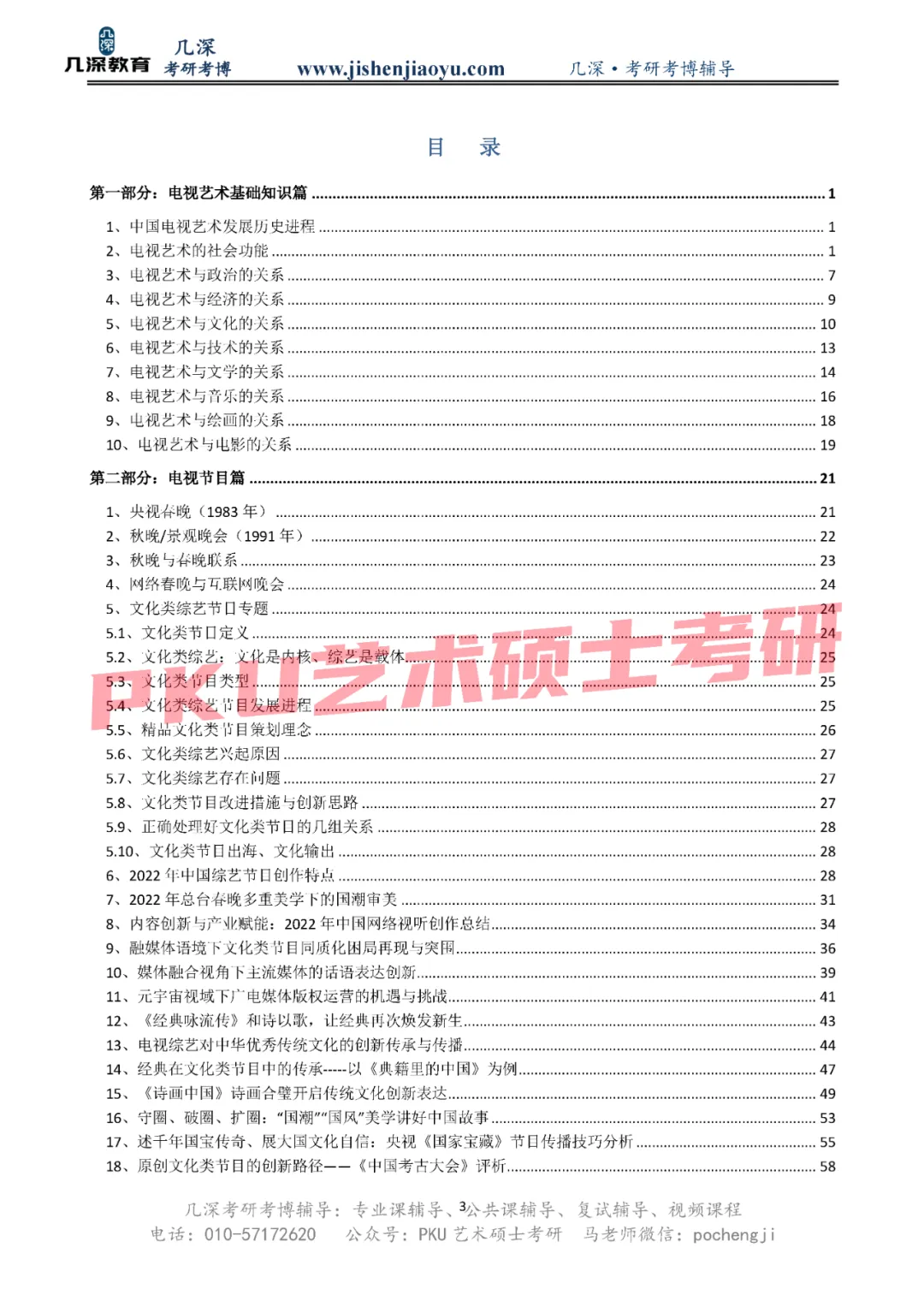涵盖电视艺术基础知识、电视节目、纪录片、戏剧与戏曲、文化产业、媒介技术与时政热点、节目创意与策划、纪录片创作与策划、历年真题九大板块