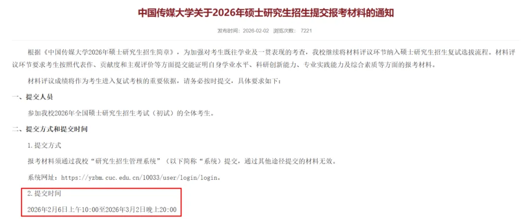 关于2026年硕士研究生招生提交报考材料的通知