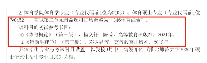 2026淮北师范大学调整之后,体育学硕、体育专硕均考346体育综合。
