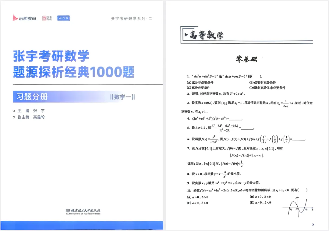 2027张宇《1000题》试题册+解析册(数一数二数三)