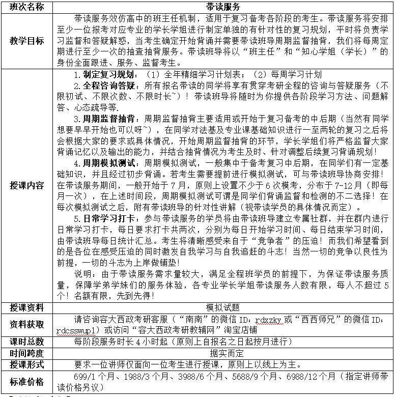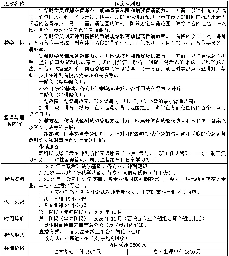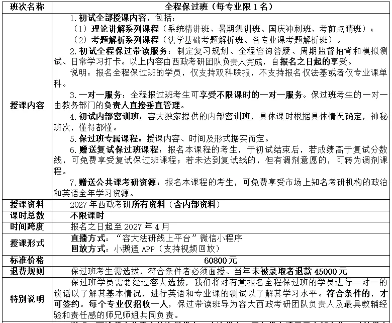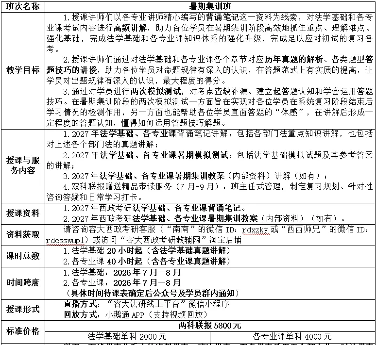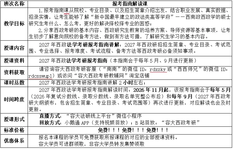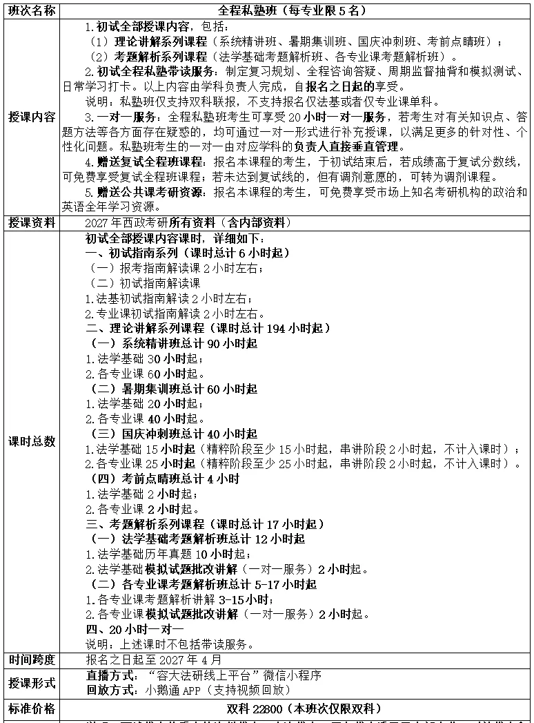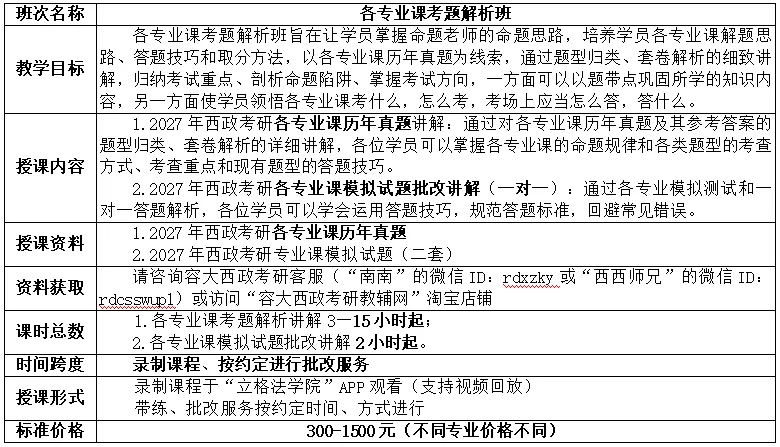 以上为27西政考研的课程、资料清单,包括各项资料和课程的内容和价格,请各位同学详细查看,如确定了考研专业,即可咨询入手哦!趁现在还有优惠!