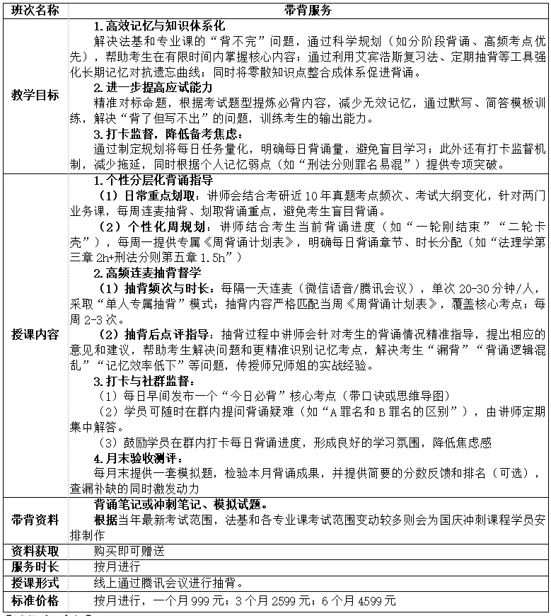 另外,复习包配备了详细的服务内容,同时说明了发货时间,如下表所示: