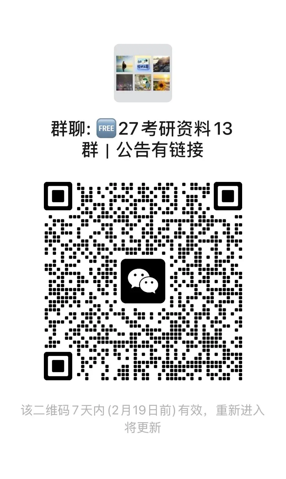 26考研网课资源都整理好了,考研人都在这个群里,我把整理好的考研资料都放在百度网盘群和夸克网盘了,每天同步更新电子资料和视频网课,有需要的宝子们赶紧扫码进群哦,群满或者有问题随时联系我:kaoyan1328