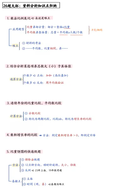 26考公 | 资料分析做题方法融合笔记(红领巾+陈怀安+花生+刘文超)