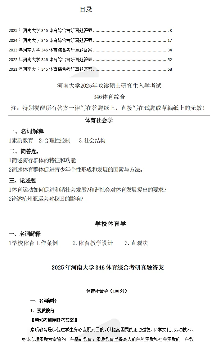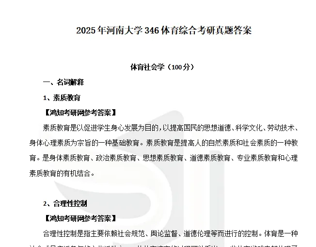 2024年河南大学346体育综合考研真题试卷与参考答案