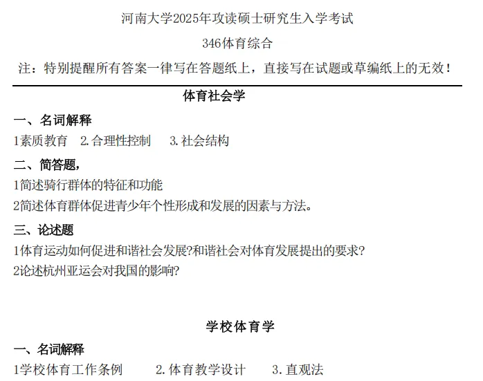2025年河南大学346体育综合考研真题试卷与参考答案