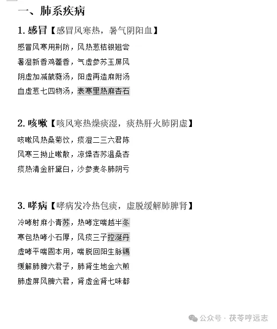 5.太短的歌诀,不建议使用,因为证型不清且指代不明。