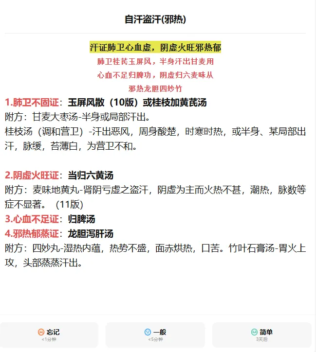 6.配套anki卡牌的方证对应部分,字体全为黑色,重点不是很突出,建议在使用时,修改颜色,突出证型。或是删除文字,将学霸笔记截图填入此部分。