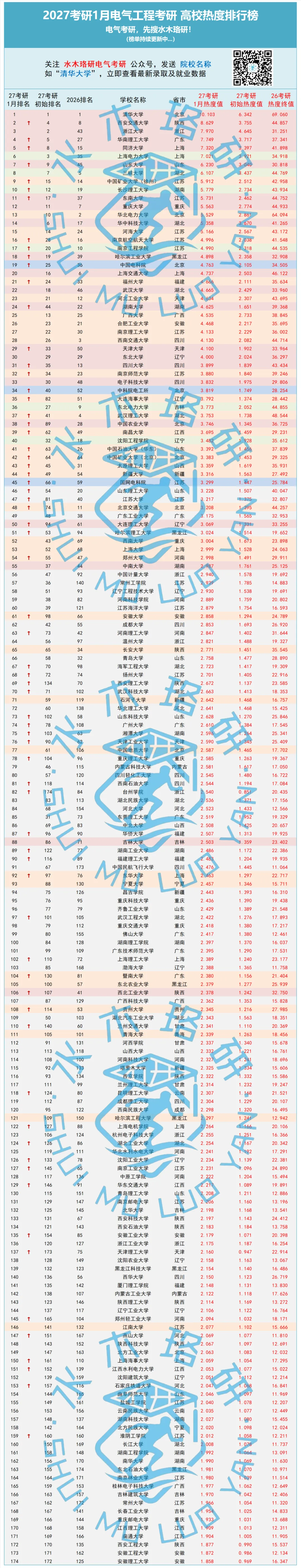 水木珞研历时两年,通过提取有效筛选各大平台后台及评论区数十万咨询消息、考研院校难度、专业课难度、全平台报班人数、往年报录数据以及最新报考人数等数据,对这些数据进行赋值加权计算,最终实现热度量化得出了这份全网独家的《全国电气考研院校院校热度排行榜》。