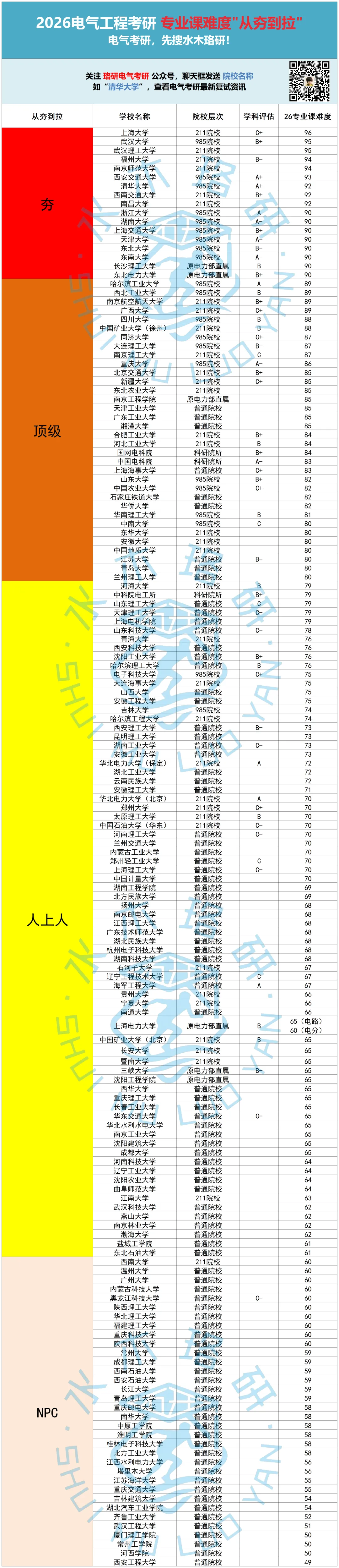 免费领取链接:从夯到拉!全国电气工程考研院校,专业课难度排行榜!