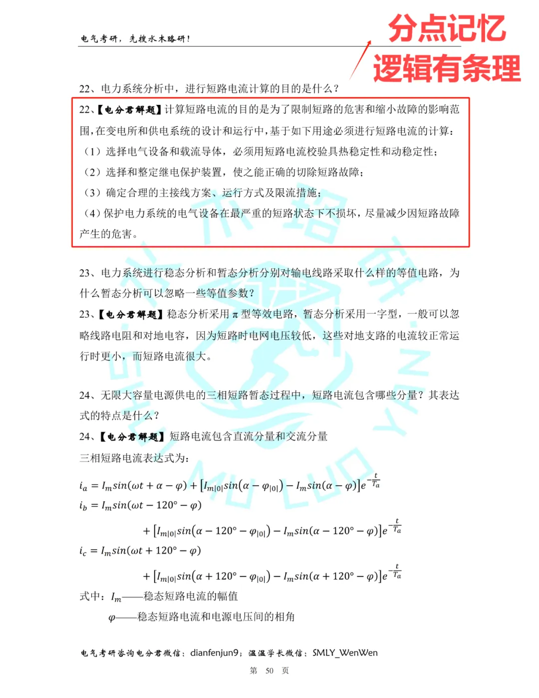 电分备考冲刺期,不少同学都被背诵难题绊住了脚,水木珞研全新推出电分简答带背与知识点考纲划重点专栏,专门帮你打破电分背诵困局!为了帮大家高效突破背诵难点,水木珞研特意整理了一份【电分简答冲刺通关宝典】:《电力系统分析简答题冲刺通关宝典》从课本概念出发,分章分点、图形结合、逻辑清晰地将简答题解释清楚,帮助考生准确记忆。