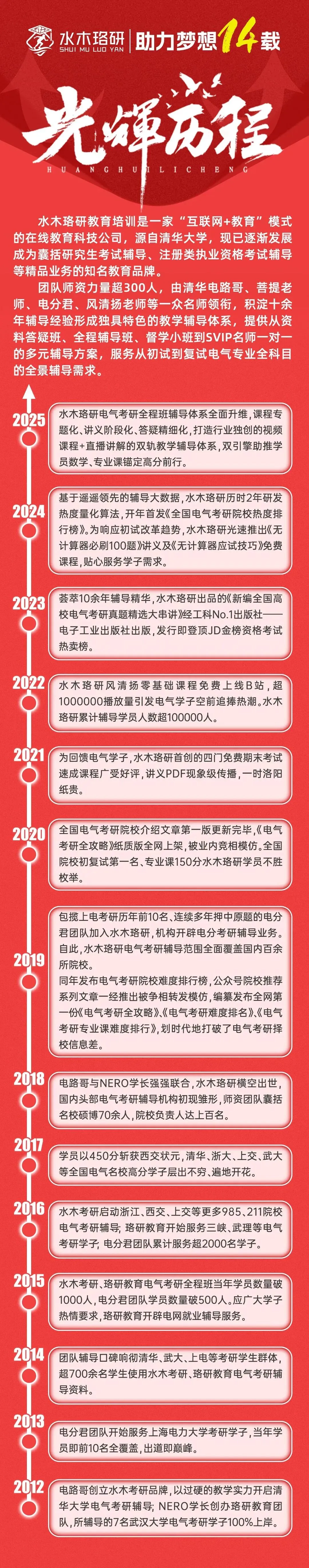 水木珞研电气考研教育辅导团队师资力量超300人,由清华电路哥、菩提老师、电分君、风清扬老师等一众名师领衔,积淀十余年辅导经验形成独具特色的教学辅导体系,累计辅导考生100000余人。在给予学生考研择校指导的同时,水木珞研提供从资料答疑班、全程辅导班、督学小班到SVIP名师一对一的多元辅导方案,为考生们提供多维度、复合型的个性化产品以供选择,服务从初试到复试电气专业全科目的全景辅导需求。