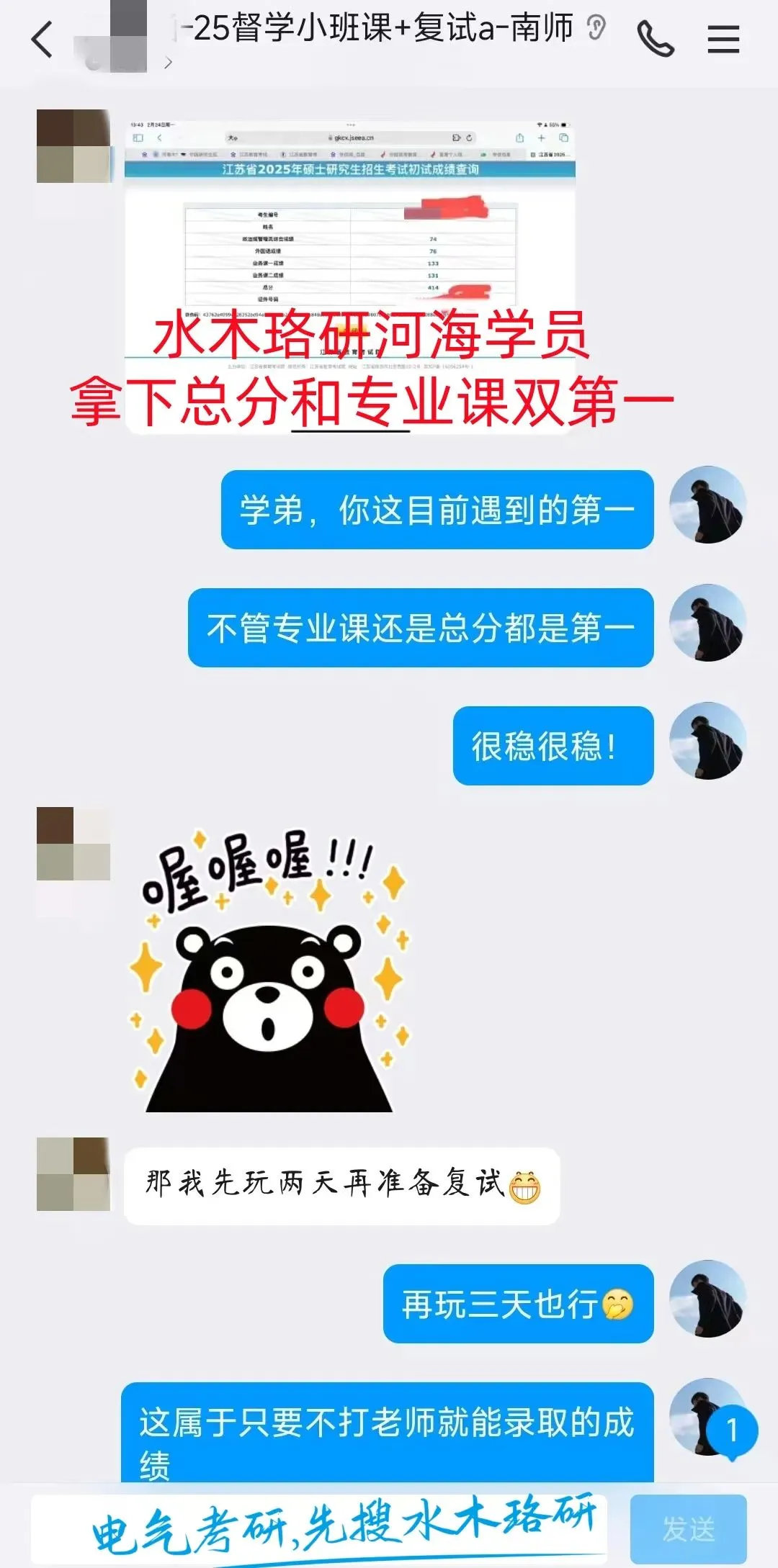 水木珞研全程班学员桃李满天下,考研成绩制霸全国,初试全程班学员身份标注清晰、一一可查,高分成绩及口碑从不自甘堕落混淆视听!