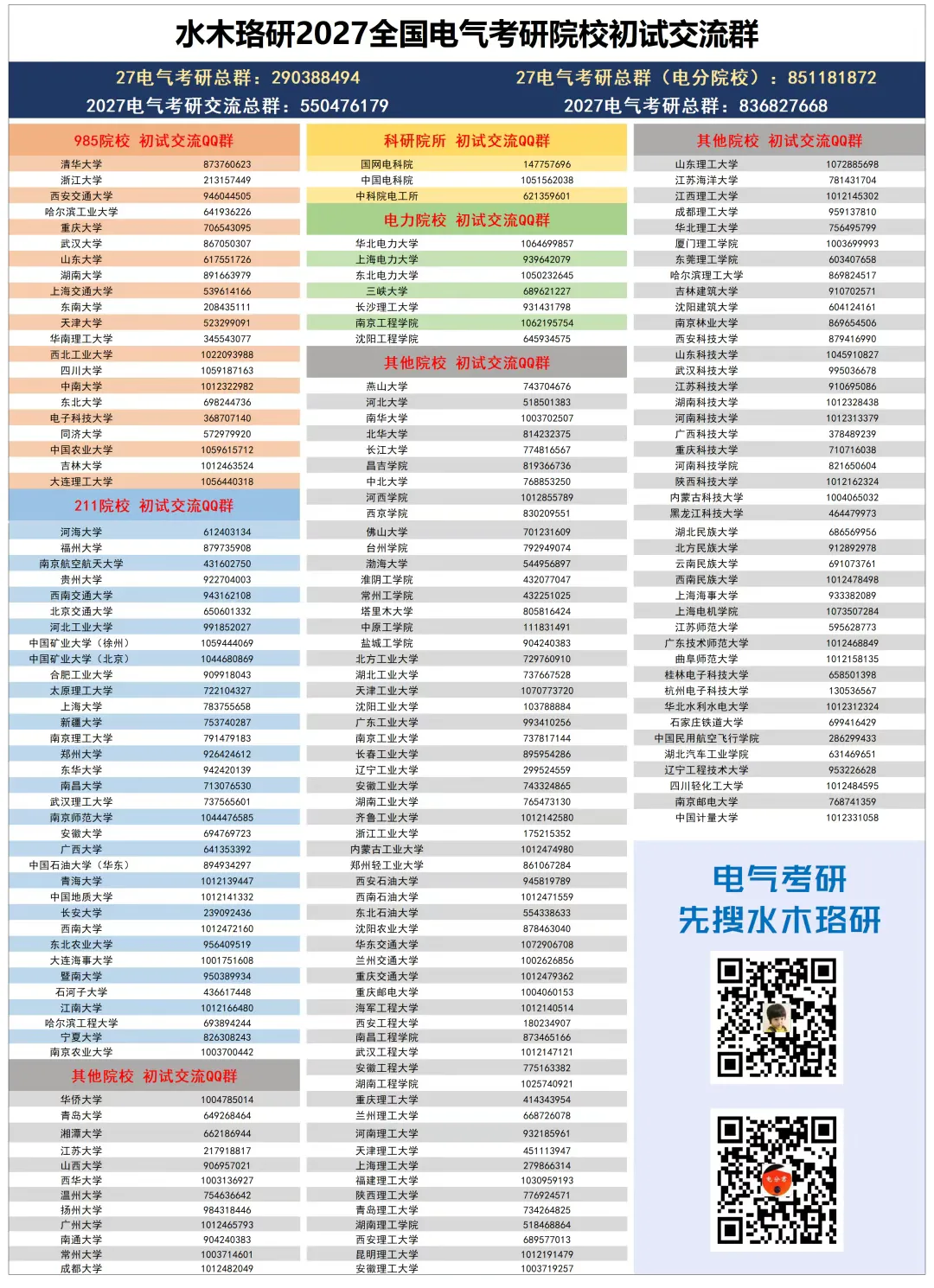 在如今资讯爆炸的时代,水木珞研深知电气工程考研、就业过程中信息所占据的关键地位,成功上岸断然不能被浩如烟海的无效内容所淹没!基于此,水木珞研陆续出版了《电气考研全攻略》、《全国电气工程考研高校热度排行榜》、《电气考研领学手册》、电气考研各大院校《报考指南》、全国电气考研院校《一图流》、《电气考研调剂全攻略》、《电气非全考研全攻略》、《电气士兵计划全攻略》,助力大家击垮信息壁垒,为考研择校之路扫清障碍!