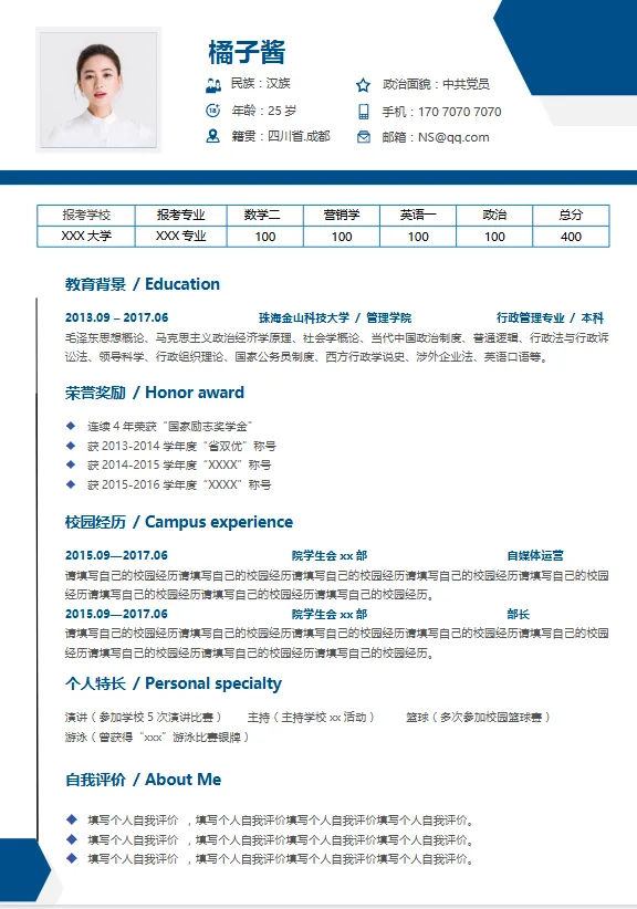 2.自我介绍中文+英文(二战、跨考等)