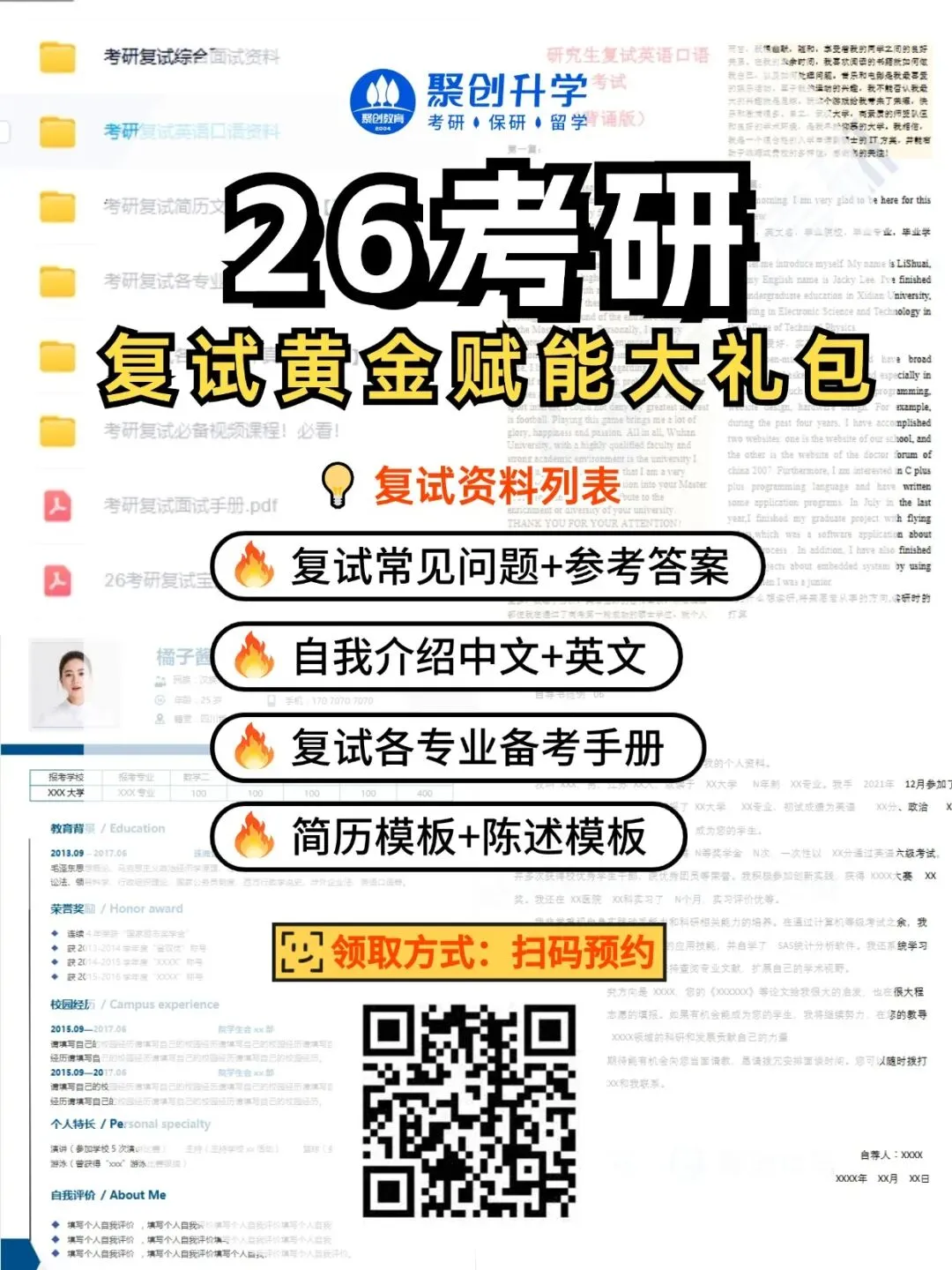 @26考研儿复试资料包免费分享!中英文自我介绍、简历模板、复试英语口语、高频问答......