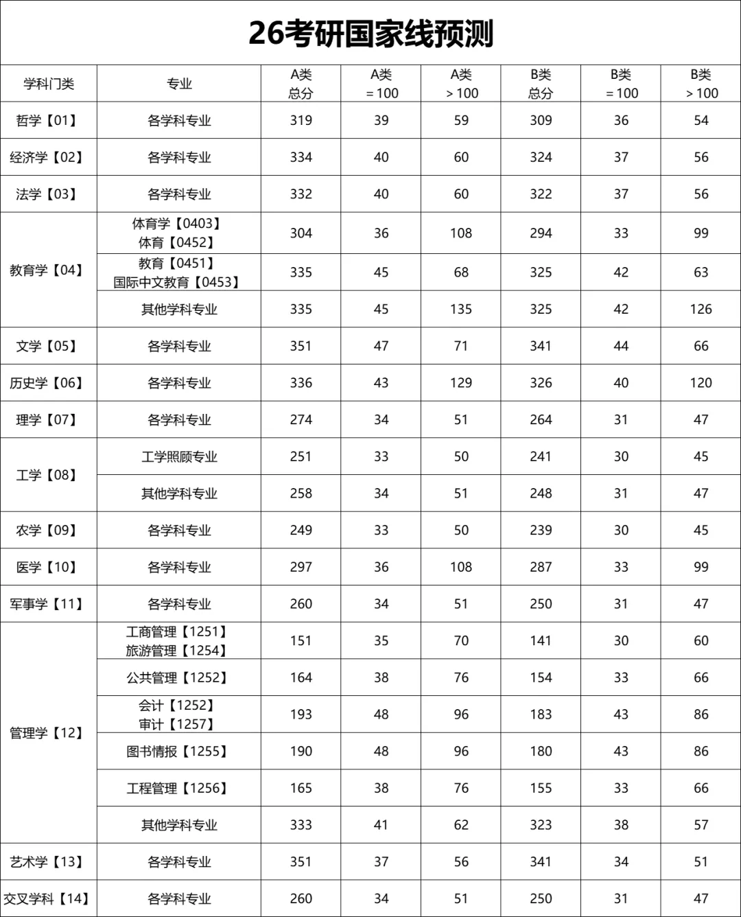 2026年各学科国家线预测
