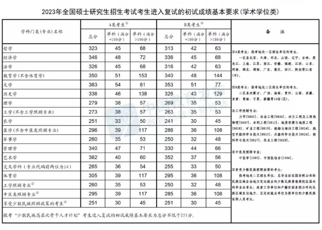 国家线-按学科门类统一划线