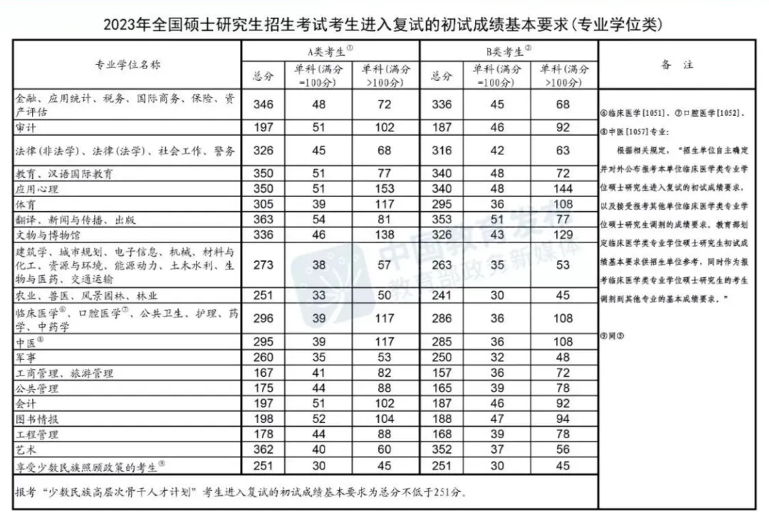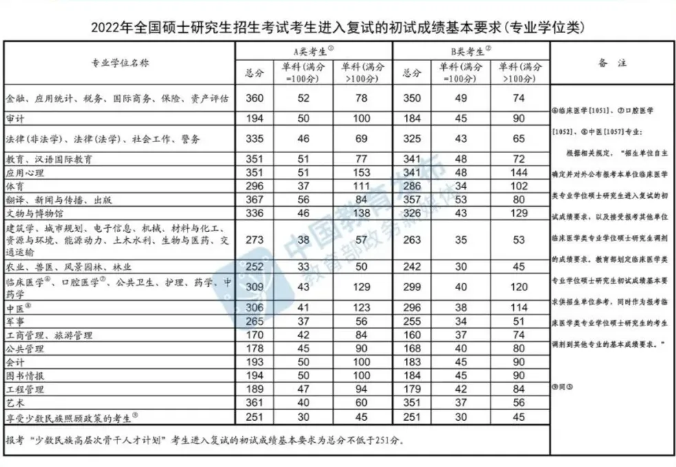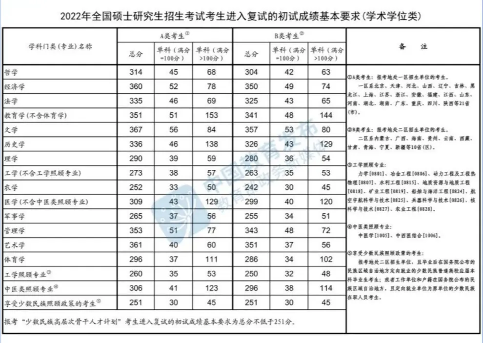 另外,很多专业不考数学,那么这个就是指专业课的,有的专业考两门专业课,每门150分,也有些专业课满分是300分的,它这里用>100分就把所有的情况都统一起来了。