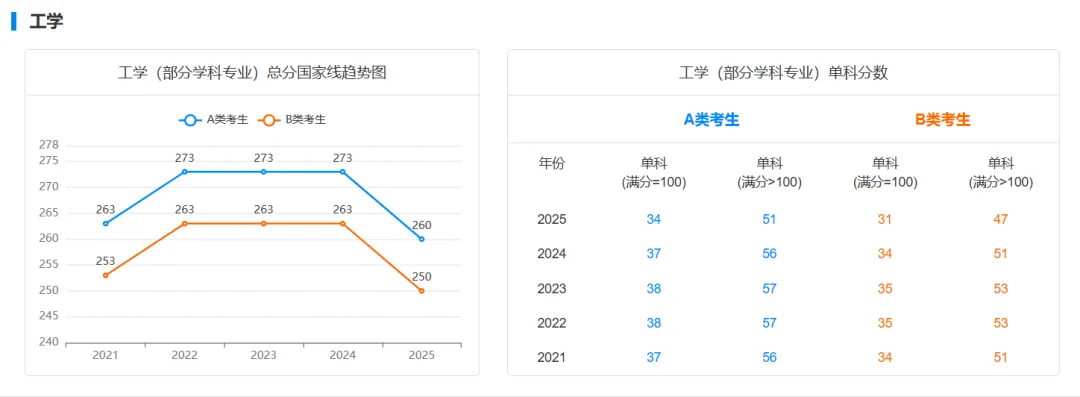 政治、英语等公共课单科线普遍回落,考生公共课压力有所减轻;而专业课单科线则因学科差异分化明显,部分人文社科类专业要求下降,体育学等专业则因2025年分数线过高出现回调。