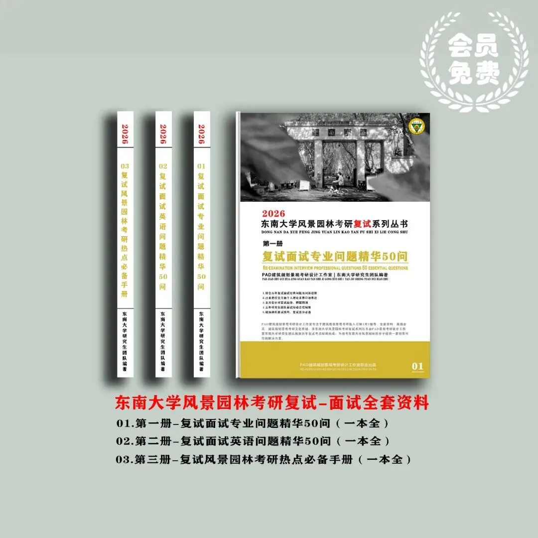 02、复试全套资料:含专业问题精华50问(含答题模板)、英语问题精华50问(含答题模板)、风景园林复试面试必备热点手册,26考研必备资料!