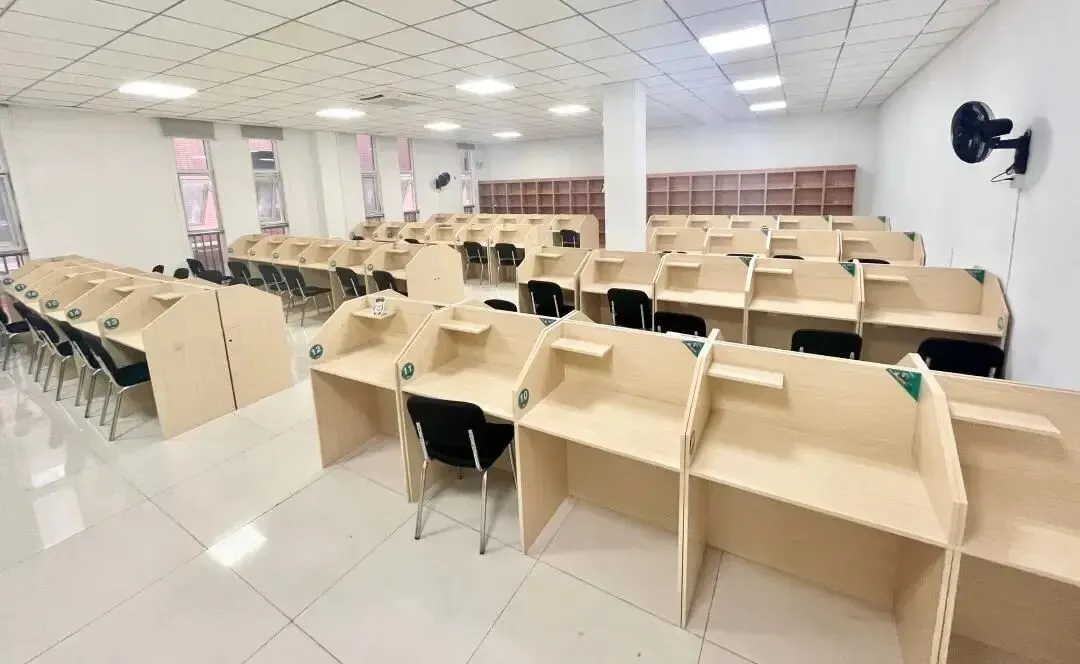 专属自习室,一人一桌一书柜,全新护眼式自习桌,座位与座位间有隔板,实现沉浸式学习。