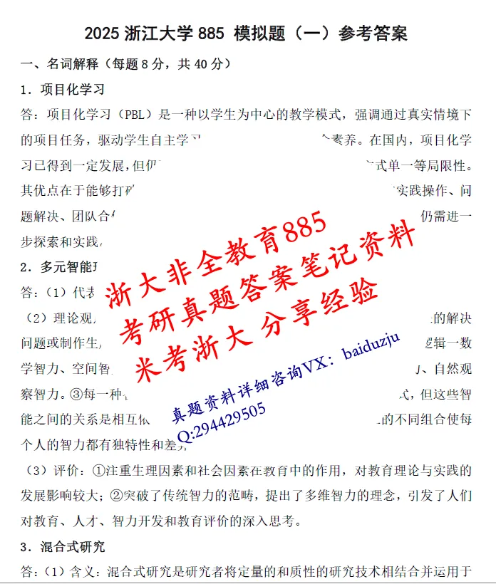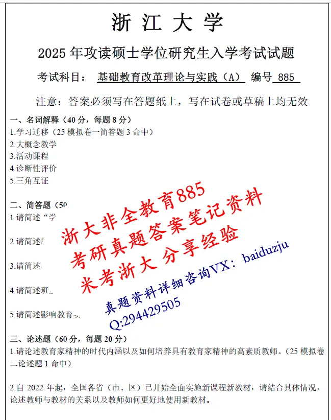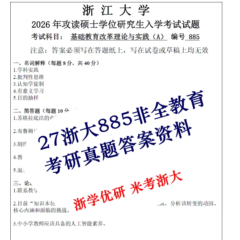 27浙江大学非全教育885基础教育改革考研真题答案笔记资料