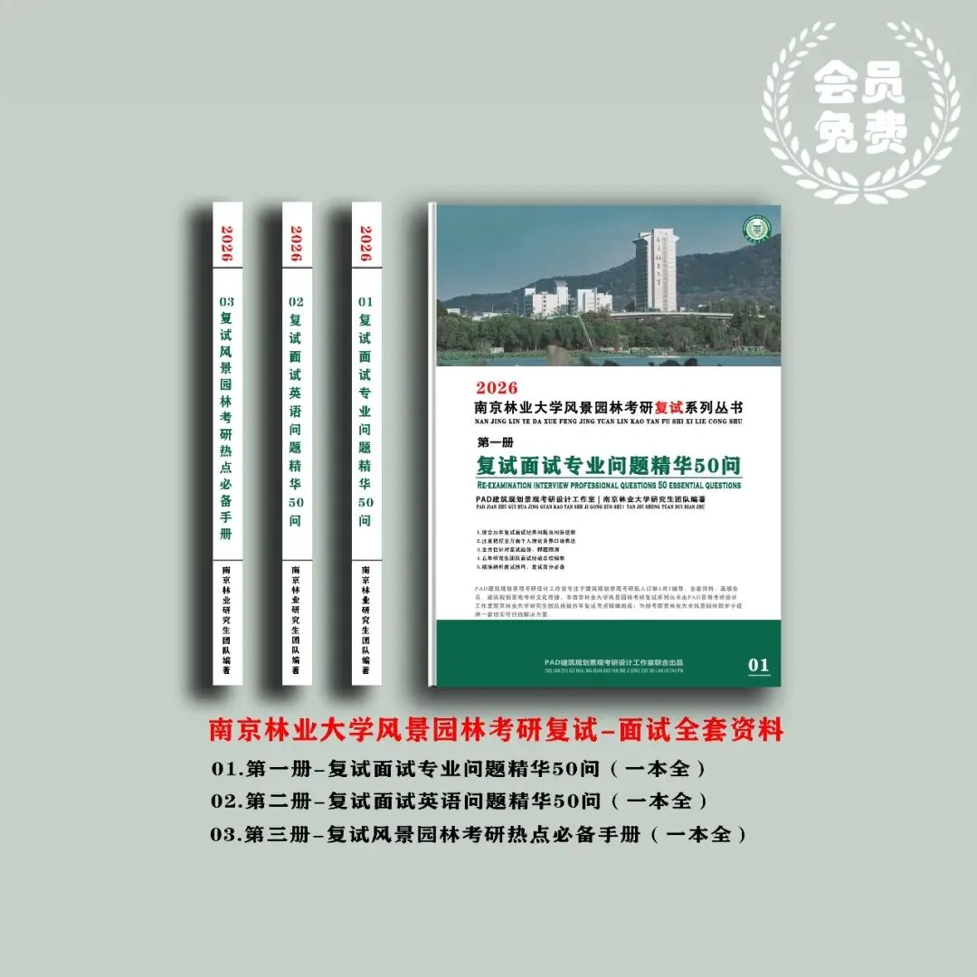 02、复试全套资料:含专业问题精华50问(含答题模板)、英语问题精华50问(含答题模板)、风景园林复试面试必备热点手册,26考研必备资料!