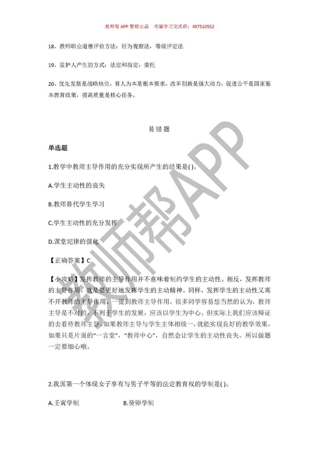 各地具体招聘人数和报名时间你们就各自关注下当地的教师招聘的信息,别错过报名啦。陶子因为个人时间有限就没给你们整理教师招聘信息了,但是给你们整理了教招错题集资料,里面包括易错知识点和易错题集,可以帮助大家对于知识盲点能迅速get到,复习得更加全面。