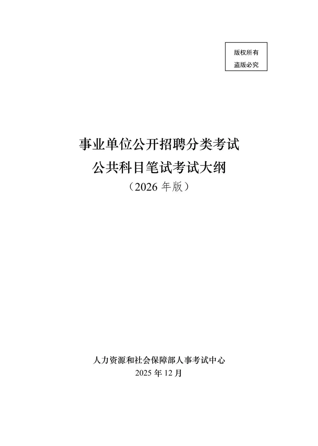 《事业单位公开招聘分类考试公共科目笔试考试大纲》(2026年版)