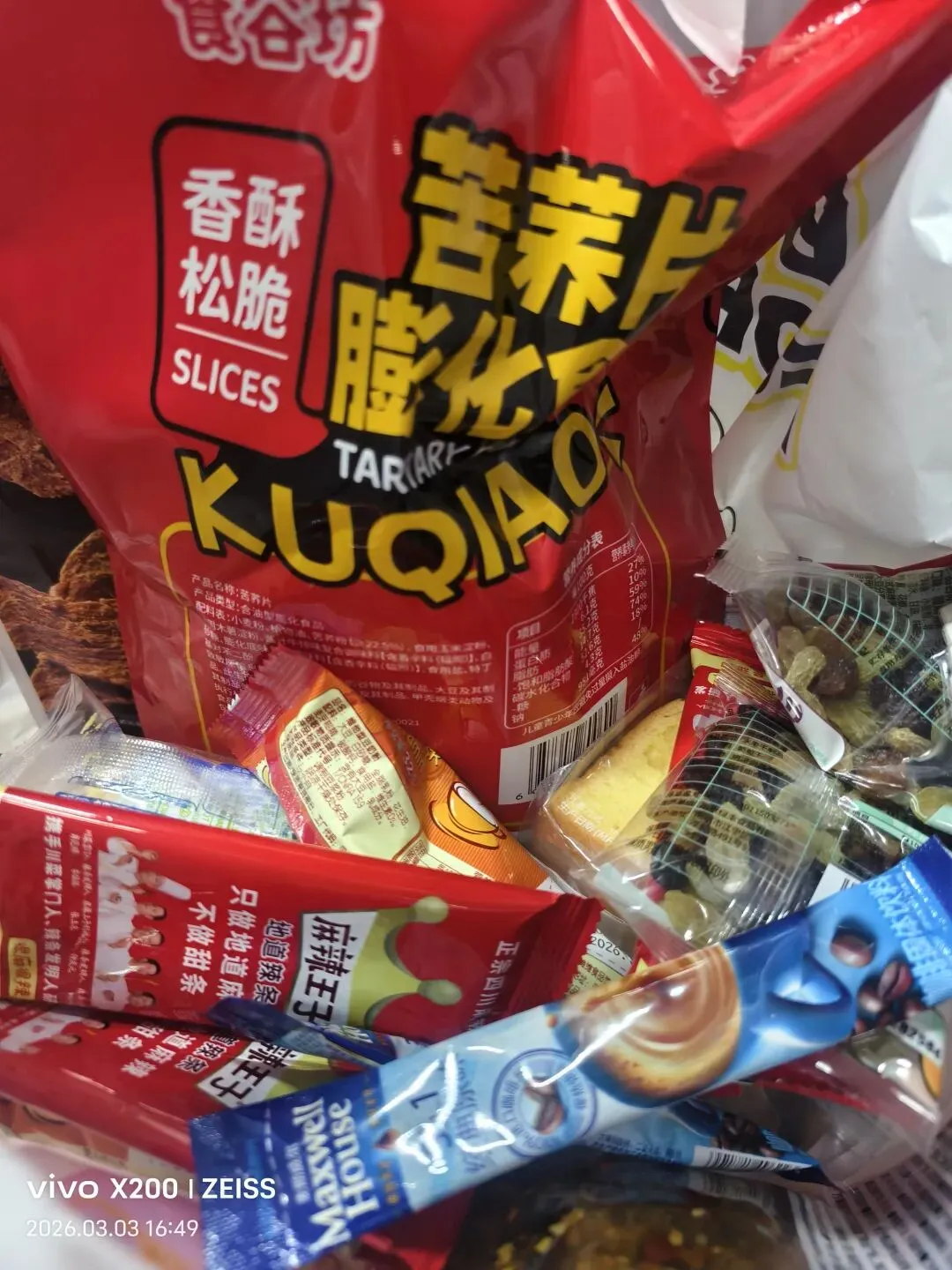 下课早,去逛了趟零食店,随便拿了些蛋糕面包、辣条。