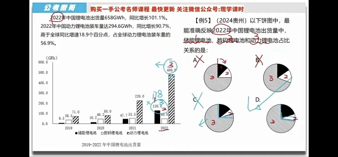 环饼图和柱状图结合看,找关系,排除选项