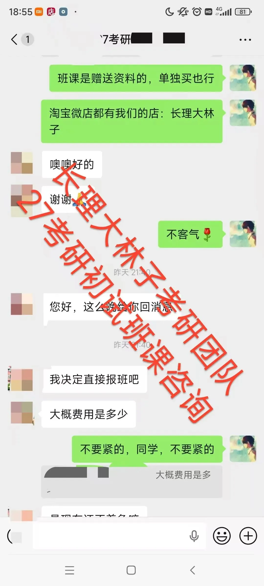 每一句询问,都是我们前进的动力。我们坚持用最实在的资料、最贴心的服务,陪伴每一位长理考研人。