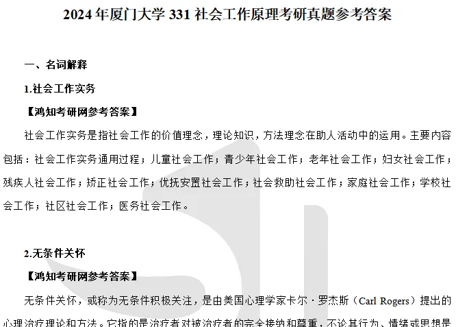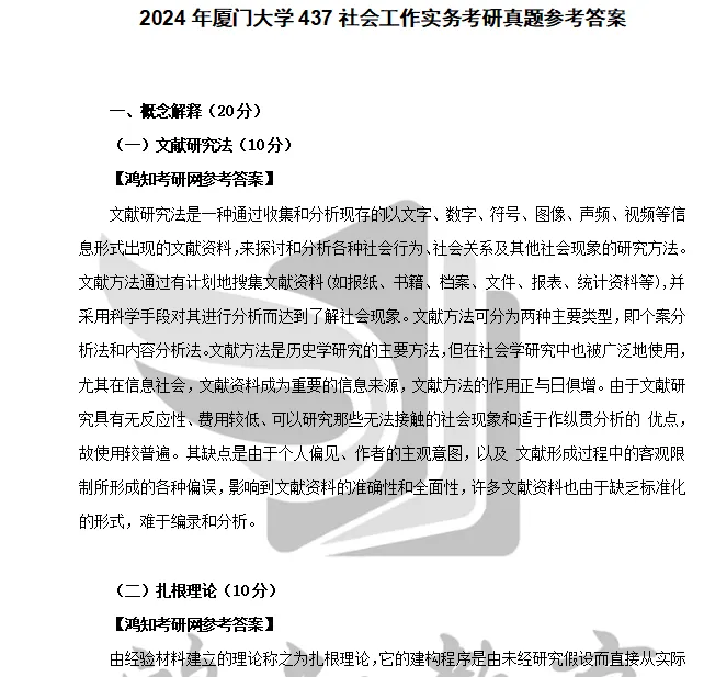 2010-2022、2024年厦门大学437社会工作实务考研真题参考答案