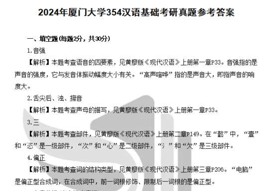 2010-2024年厦门大学354汉语基础考研真题答案详解