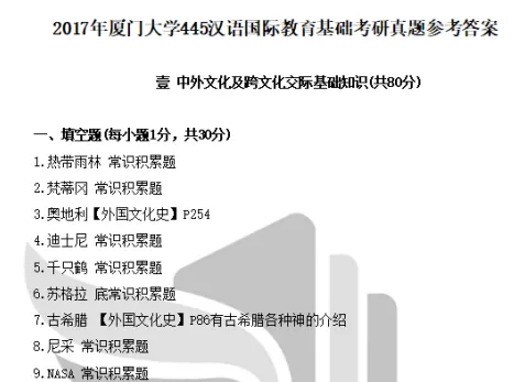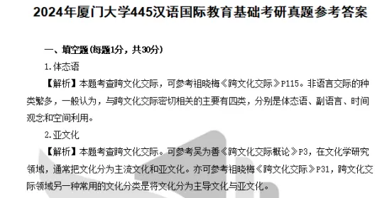 2010-2024年厦门大学445汉语国际教育基础考研真题答案详解